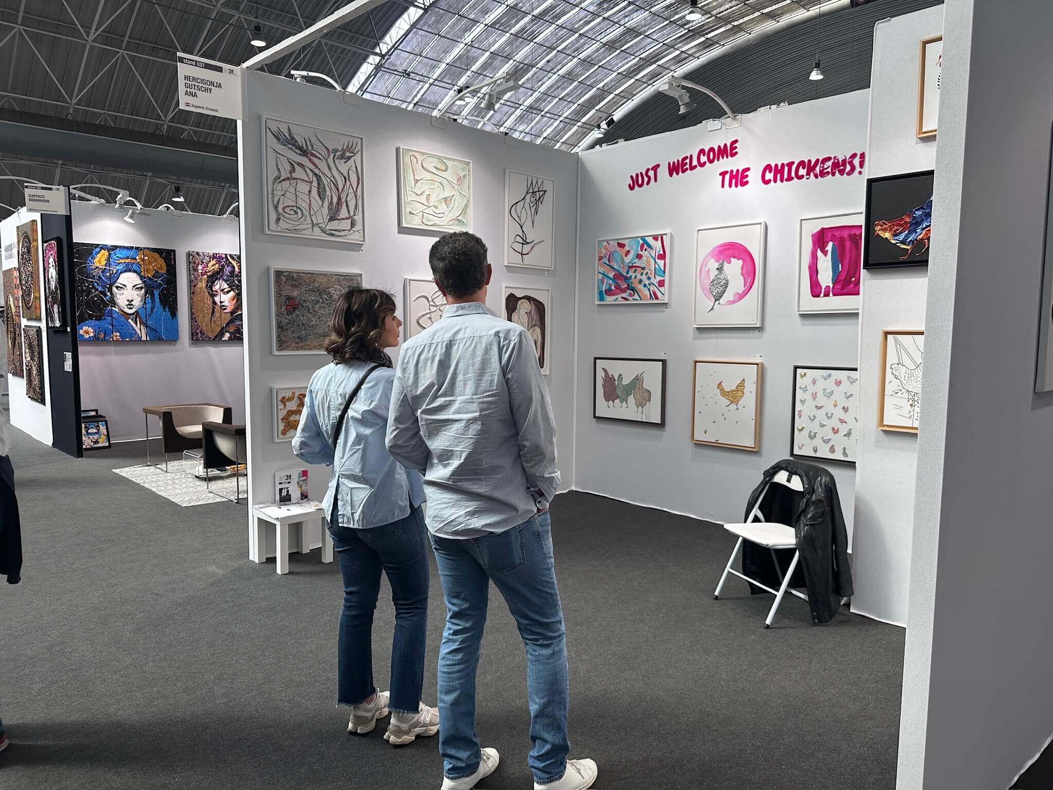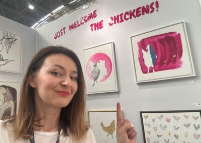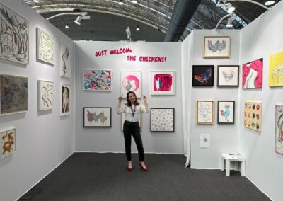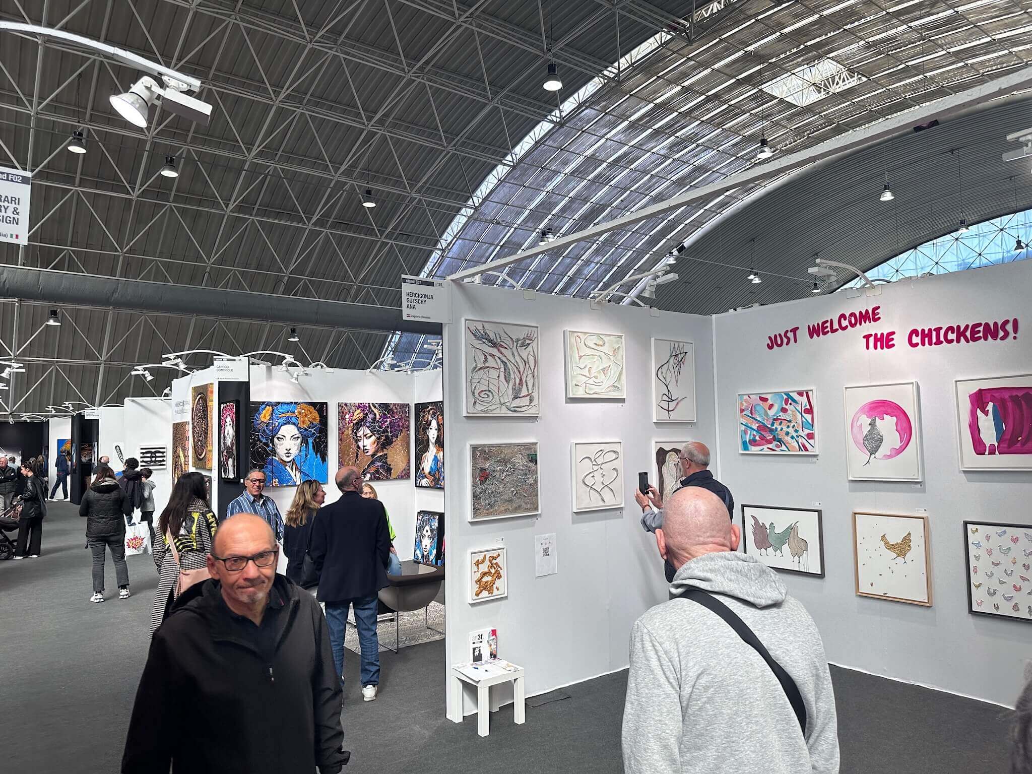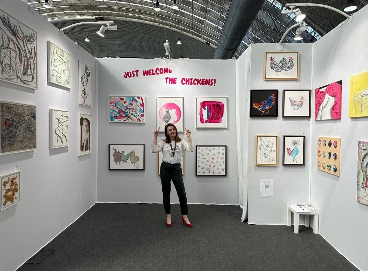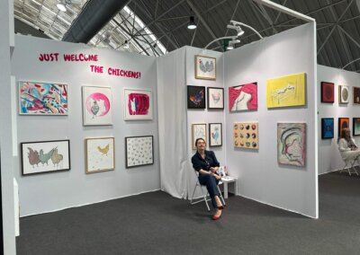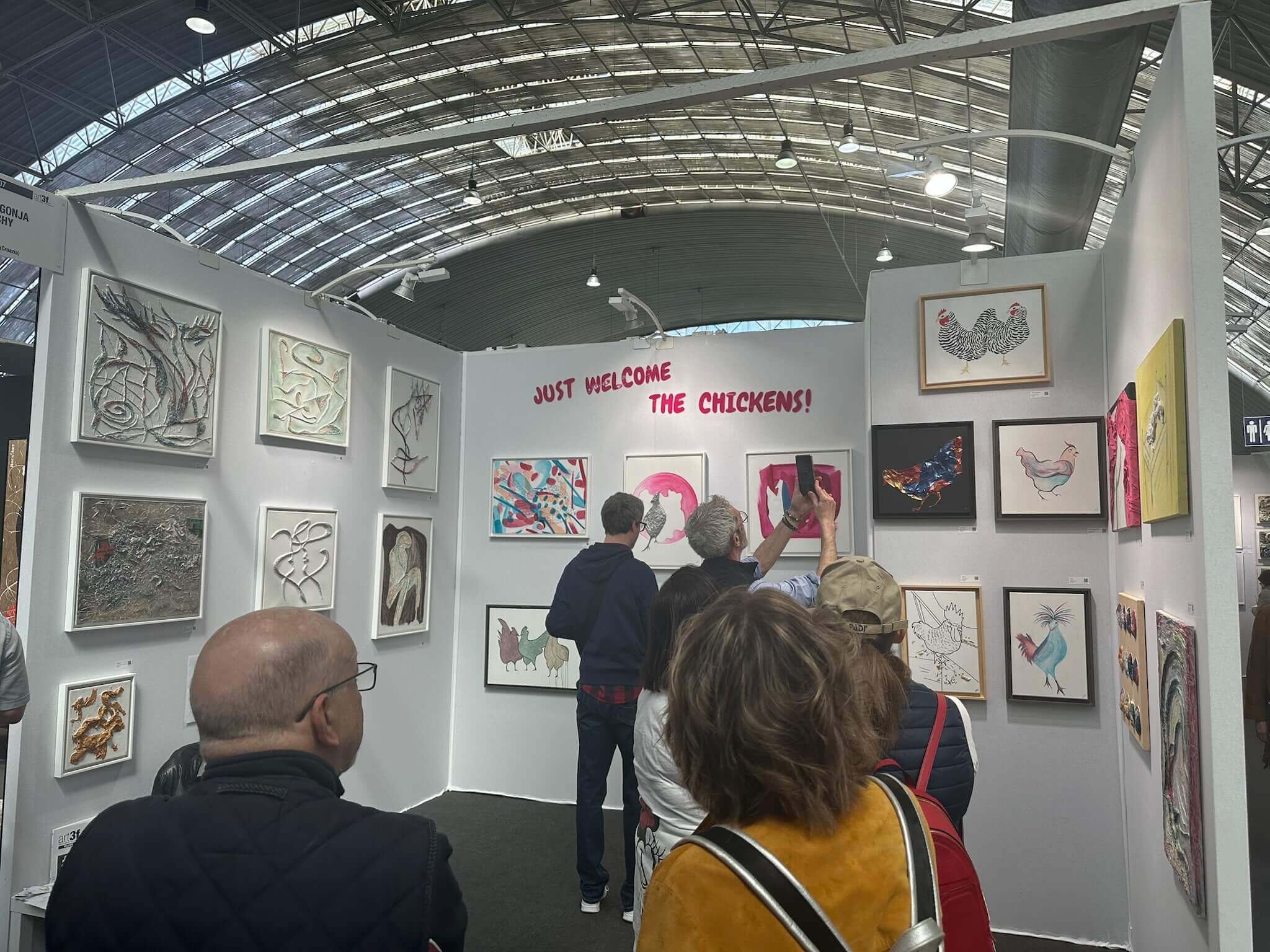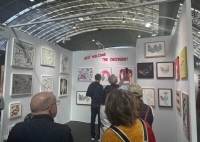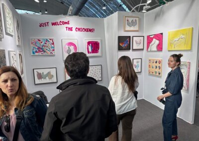 In 2025. I exhibited at the art fair in Milan that was organised by Art3f with my series “Just welcome the chickens“.
