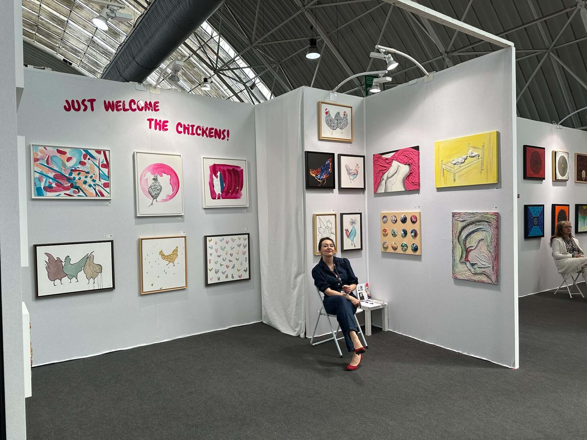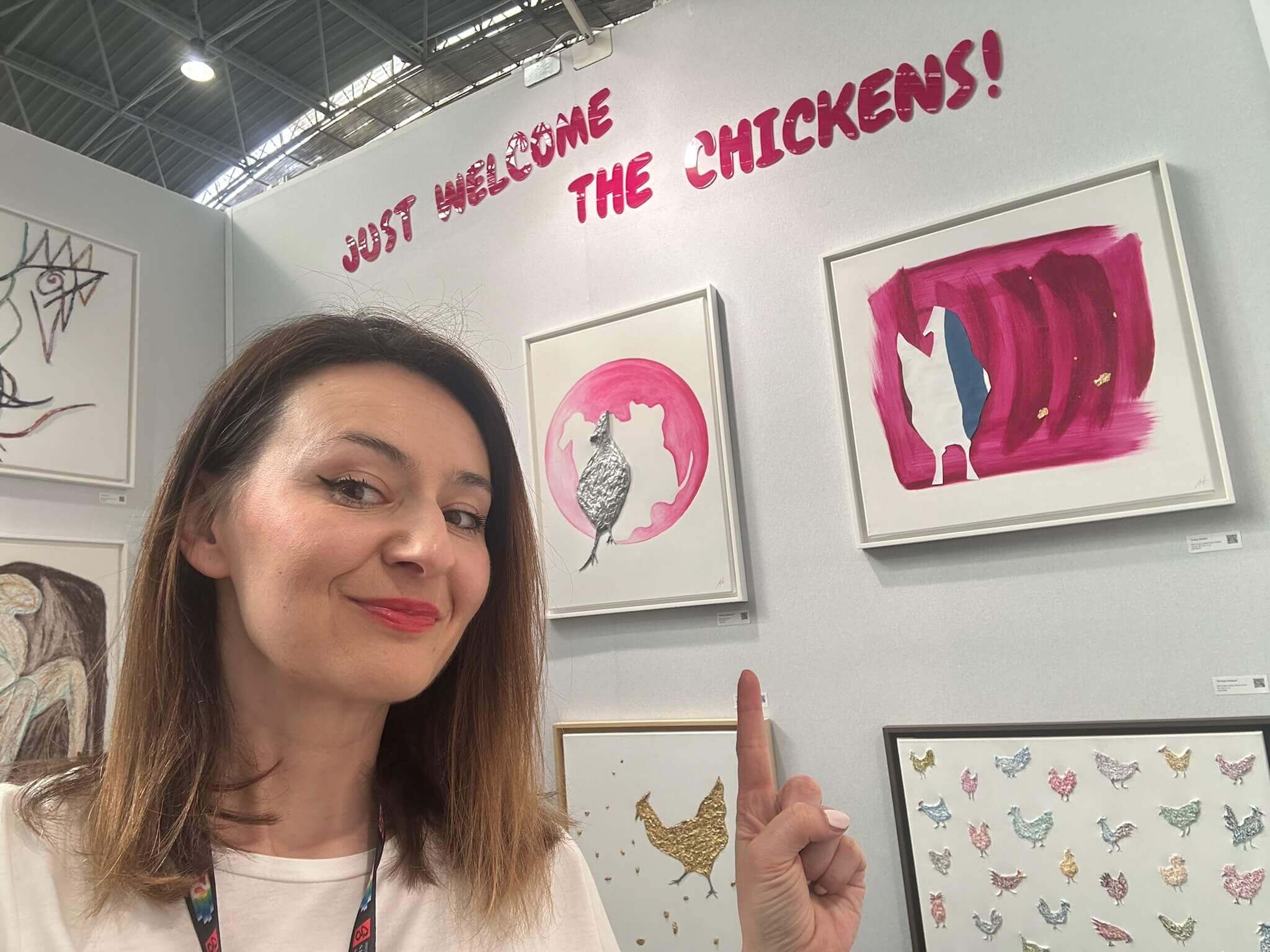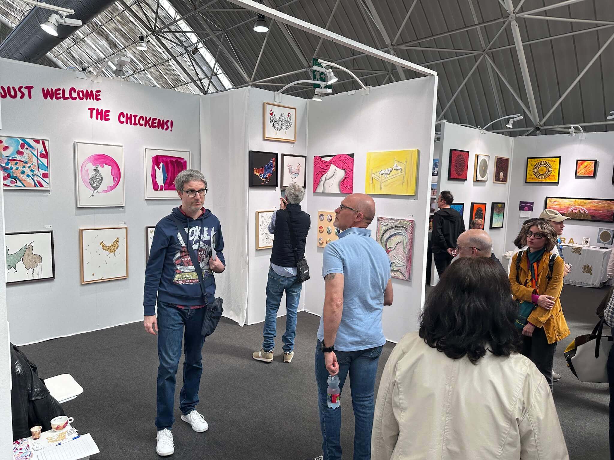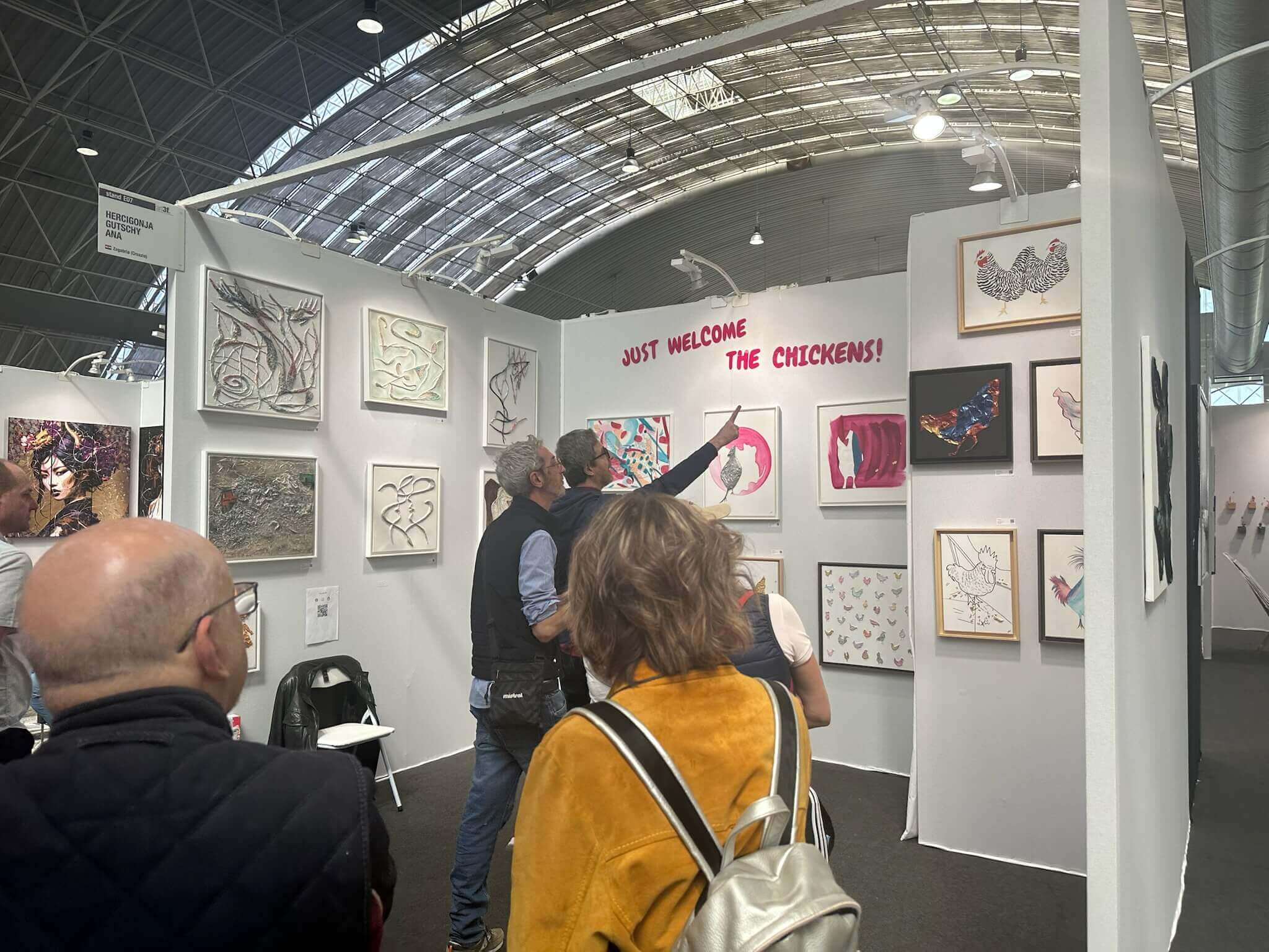 In 2025. I exhibited at the art fair in Milan that was organised by Art3f with my series “Just welcome the chickens“.