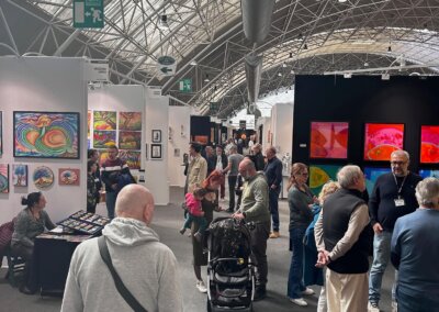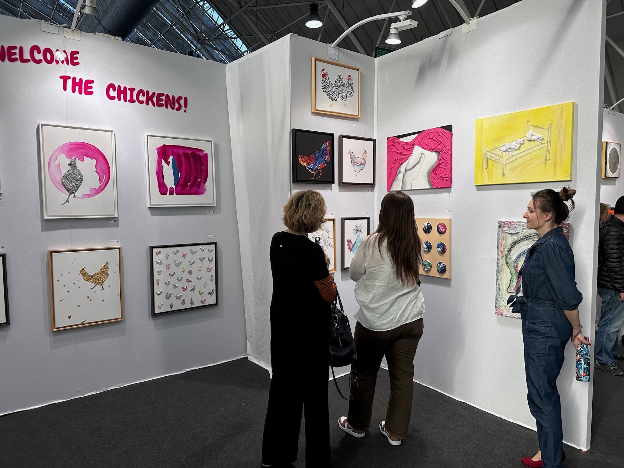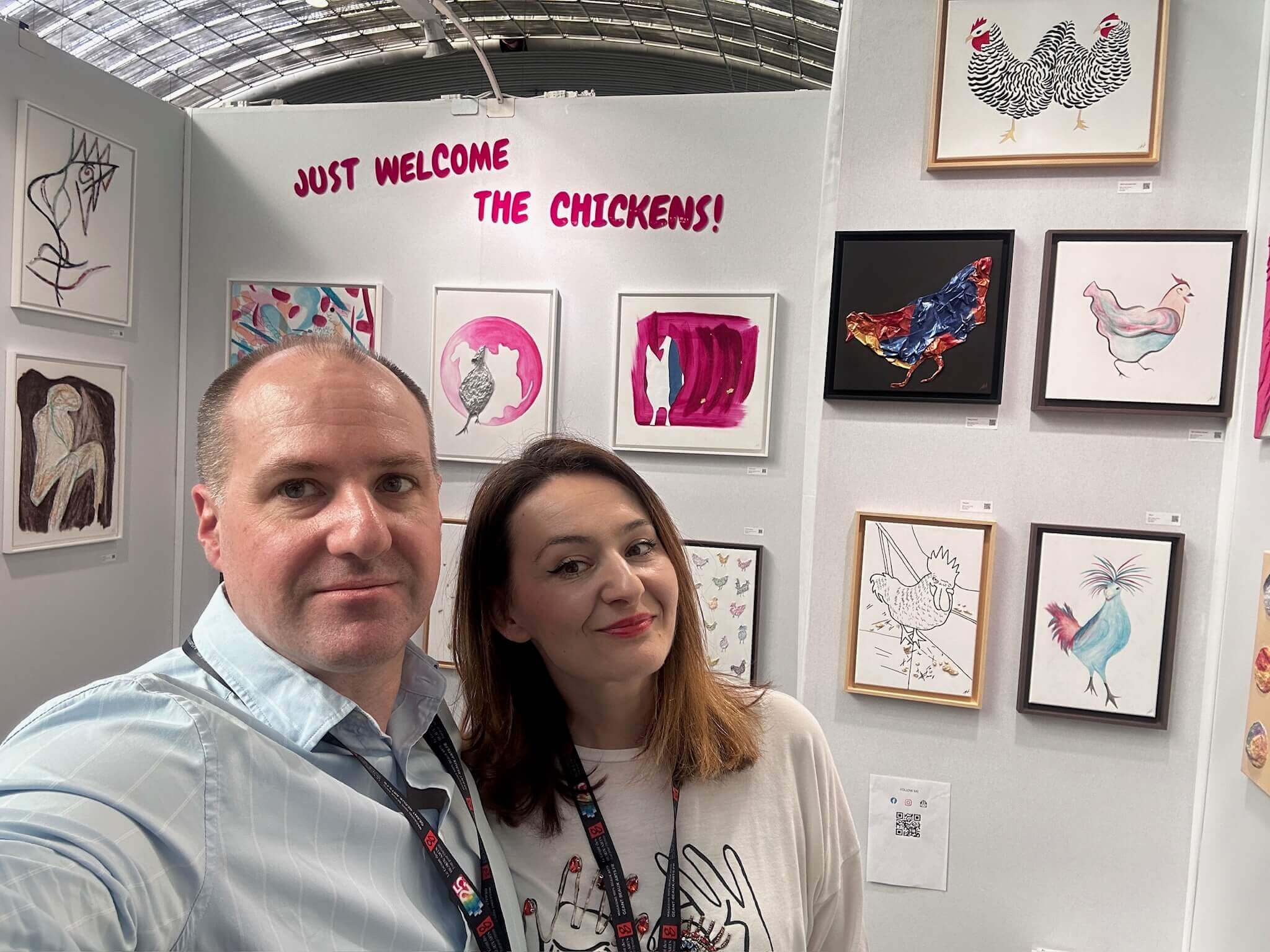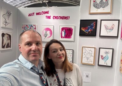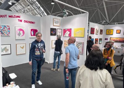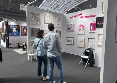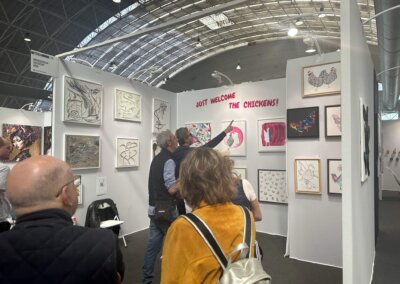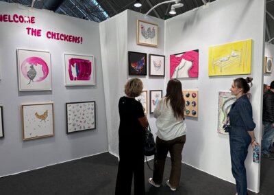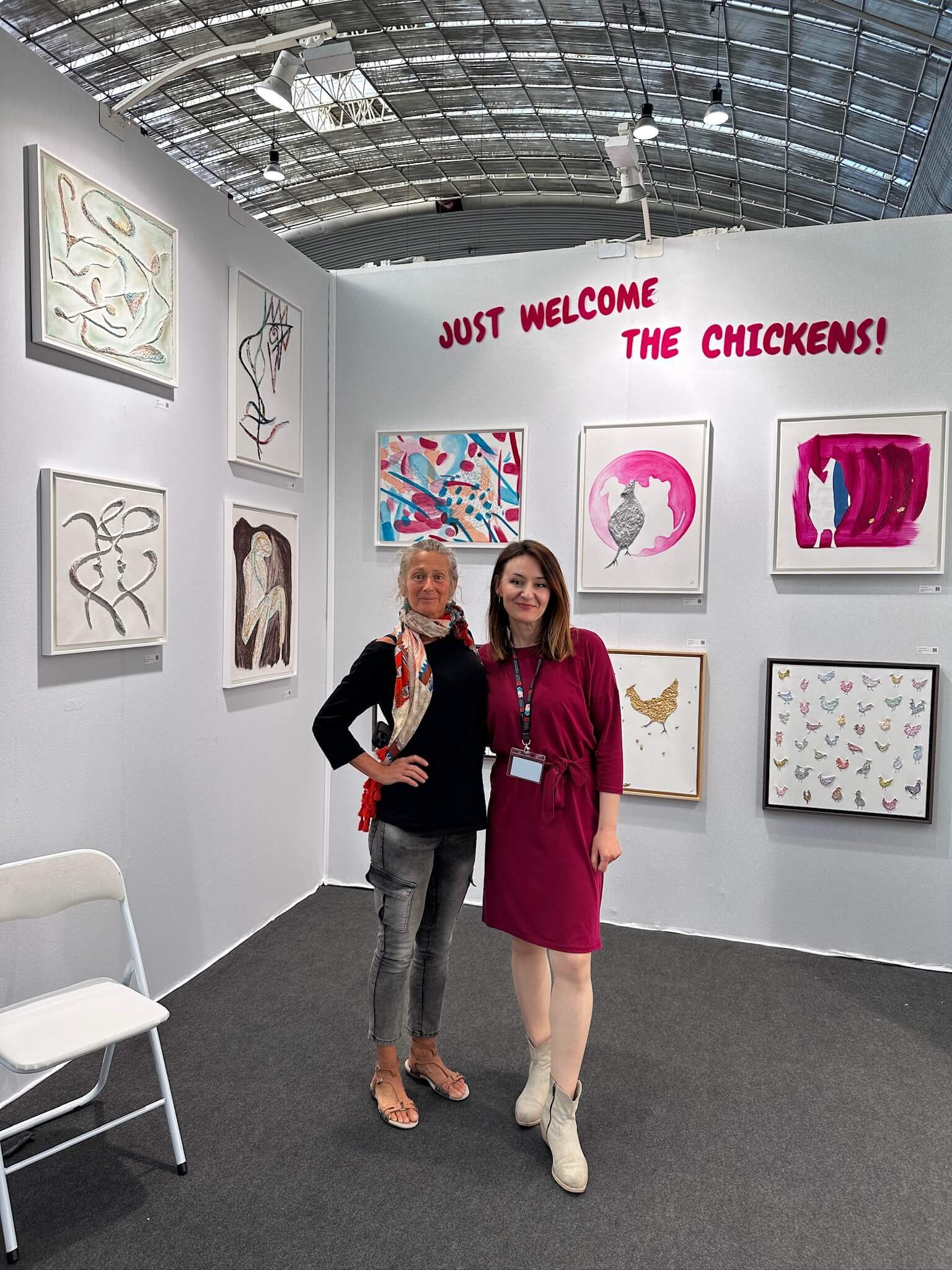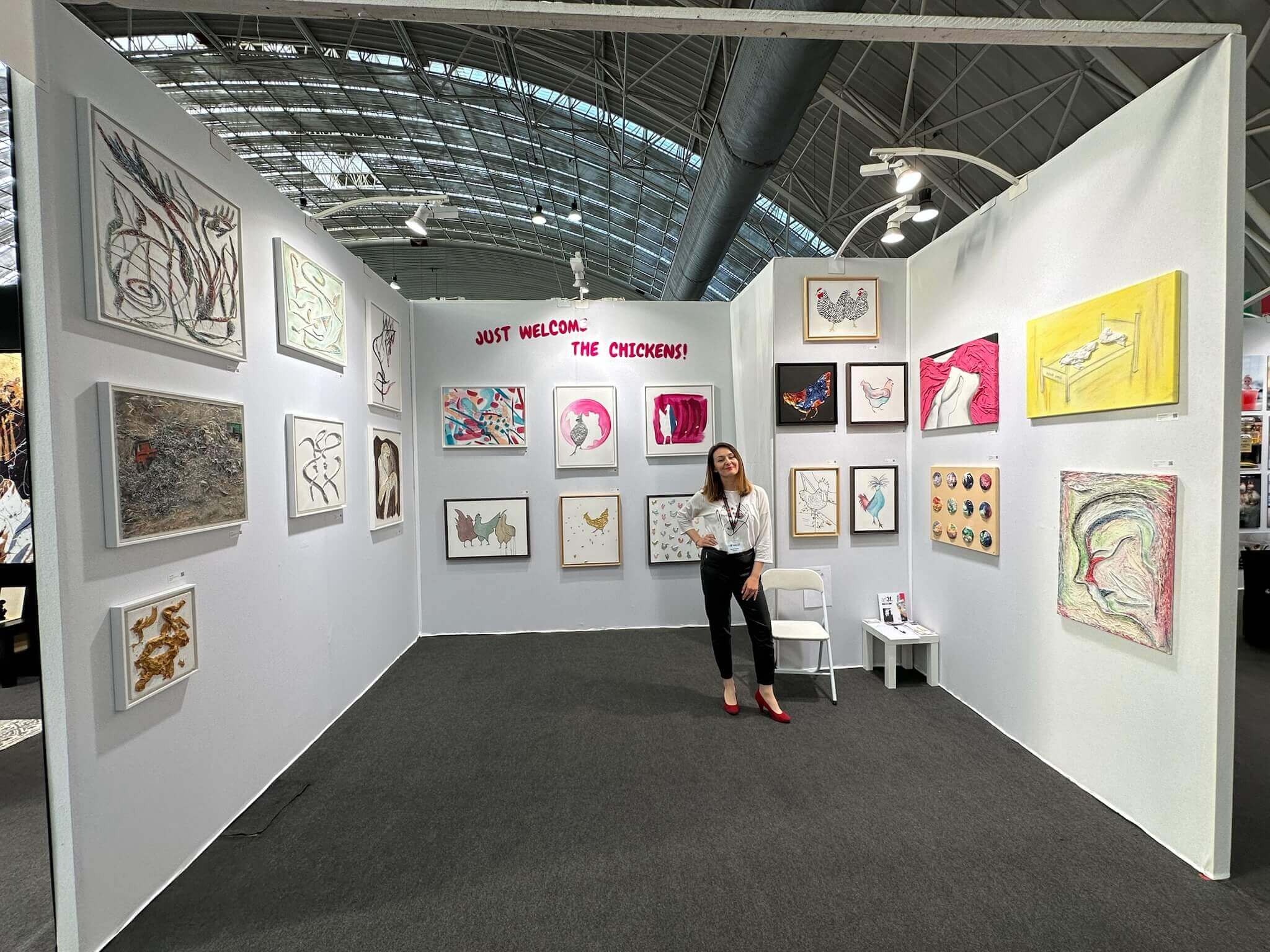 In 2025. I exhibited at the art fair in Milan that was organised by Art3f with my series “Just welcome the chickens“.