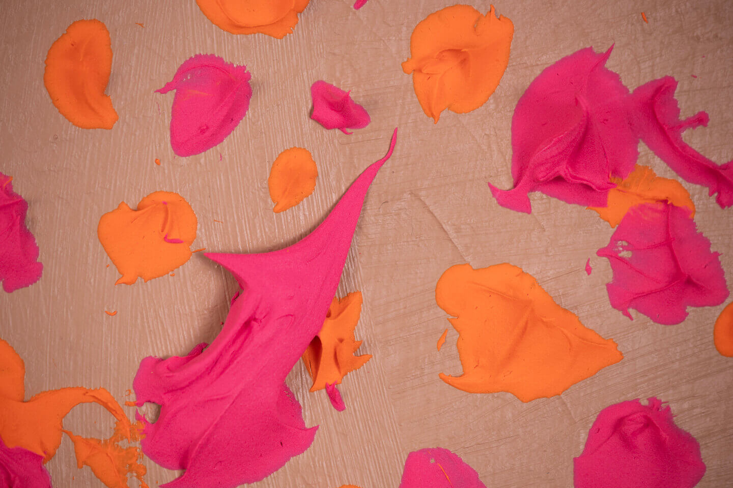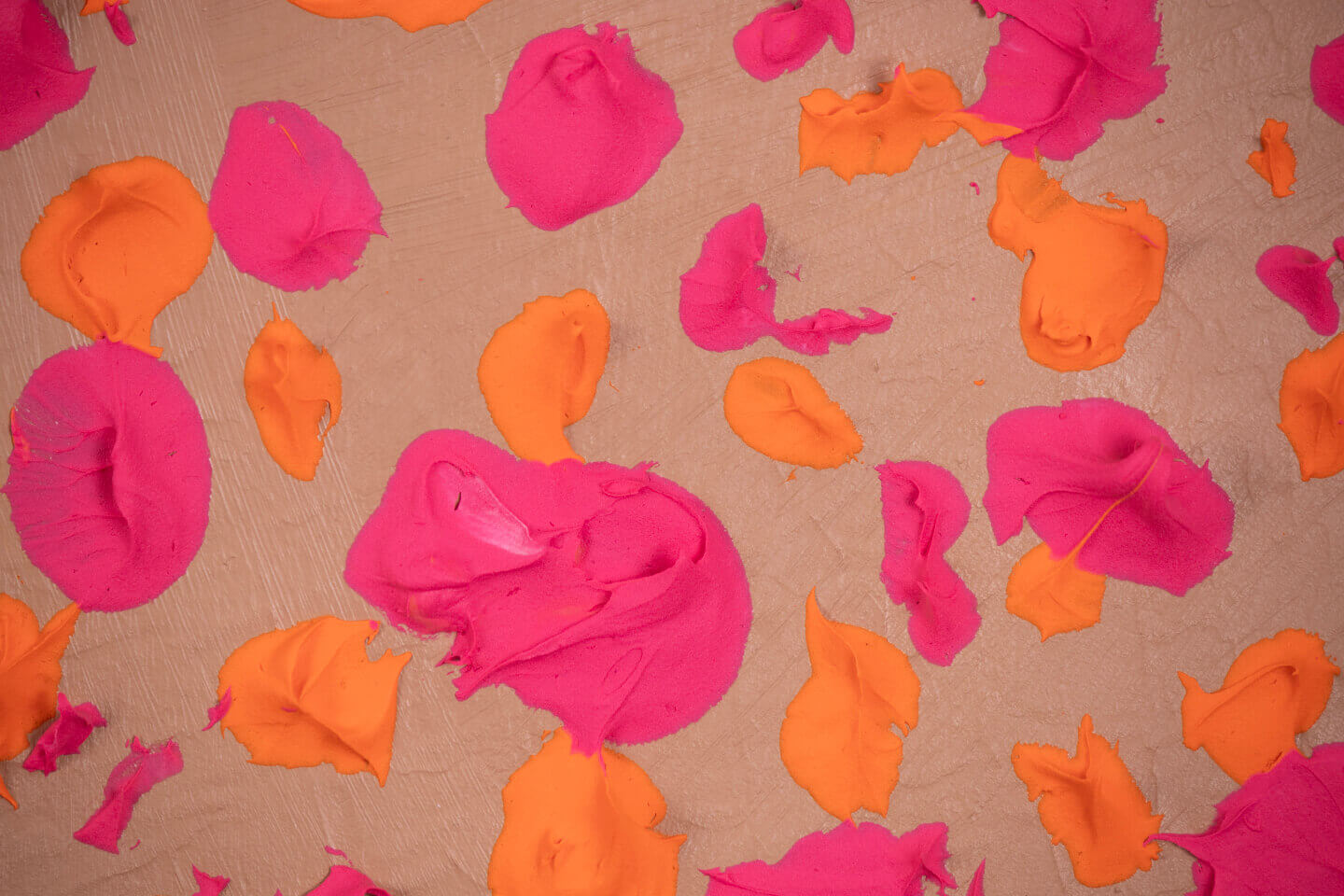 This is the eighth piece in a series of paintings in Artist Territory. For a while, I was haunted by a vision of the provocative combination of orange and pink on the cardboard. I wanted a provocative and shocking effect on the viewer.