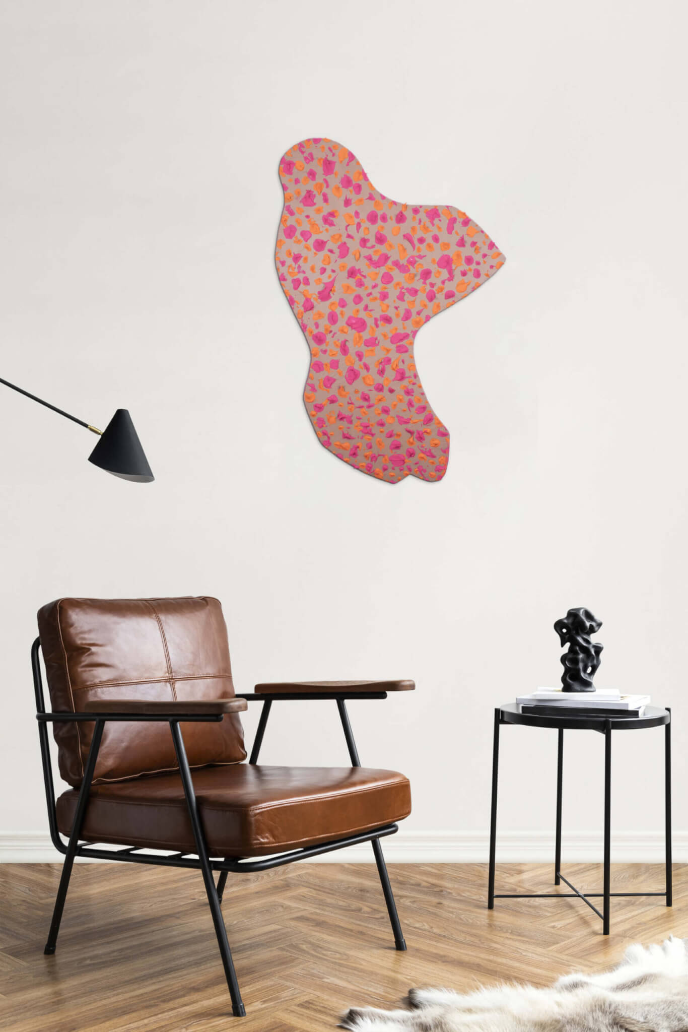 The interplay of vivid colours and emphasised texture invites tactile engagement, whereas the spiky surface deters it, rendering the work ambivalent.