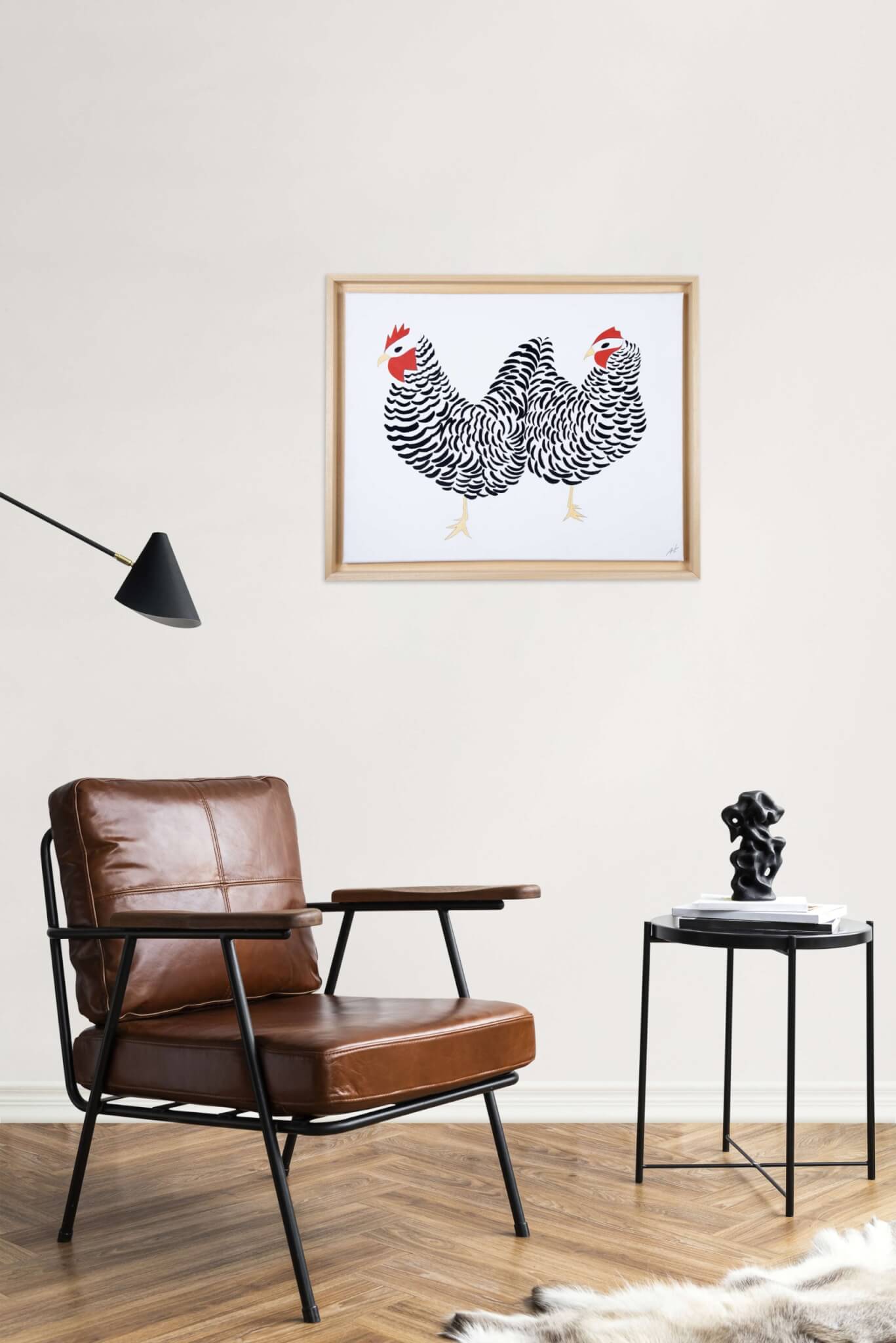 Combining the charm of chickens with a healthy dose of humour, these pieces are sure to bring a smile to your face. Each artwork in the series features quirky chicken characters crafted with care and attention to detail. With these paintings, I capture the essence of joy and spontaneity.